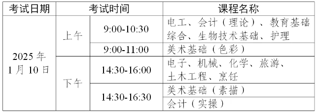 2.其他課程類別操作技能考試由各市招生考試機構根據實際情況在2024年12月28日至2025年1月12日內完成。各門課程操作技能考試工種類別代碼及考試時間詳見附件1。